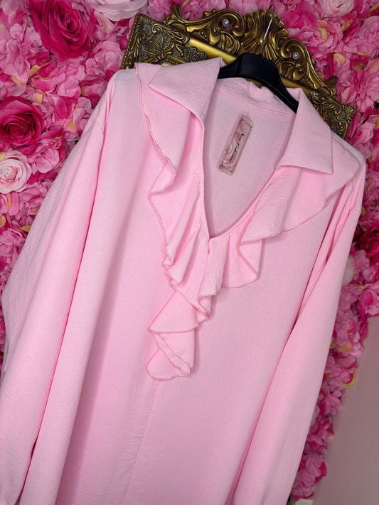 *LUCKY LOOK* Blouse Ruff Licht Roze Plus Size maat 48 t/m 54