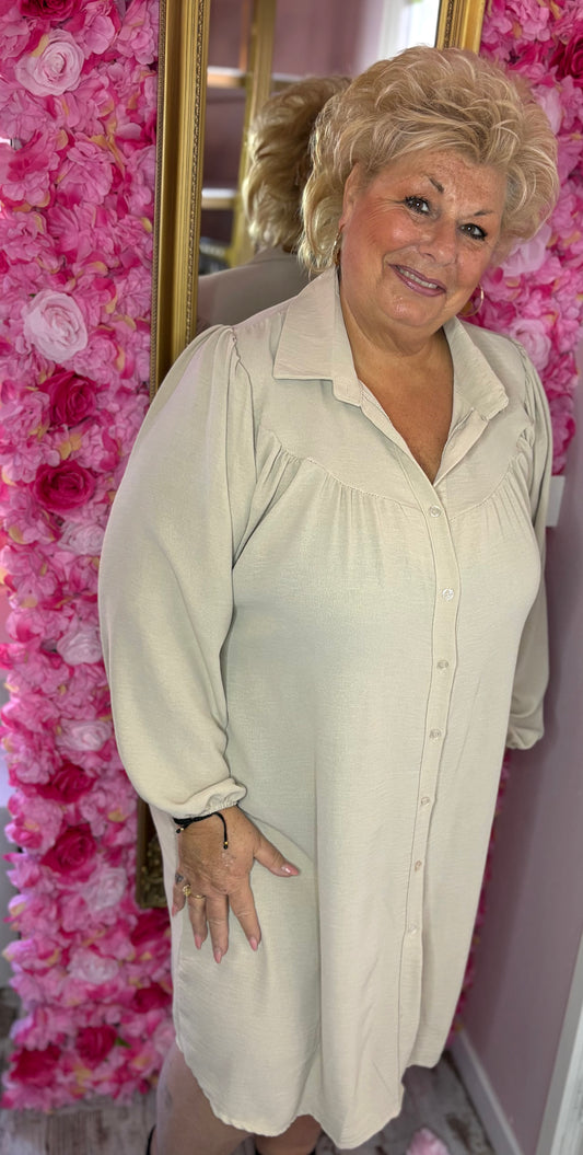 *LUCKY LOOK* Blouse Ruff Beige Plus Size maat 48 t/m 54