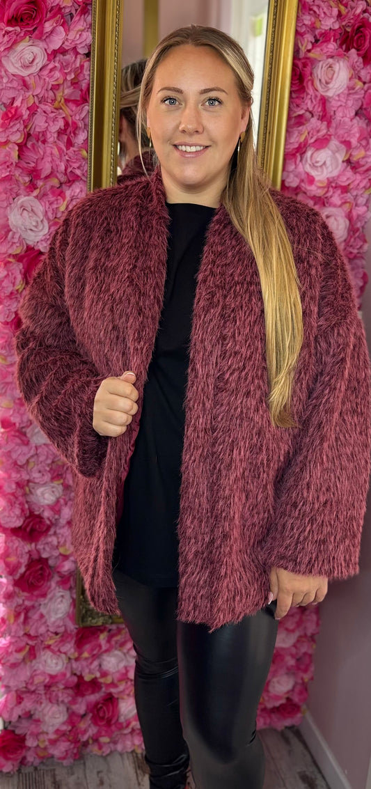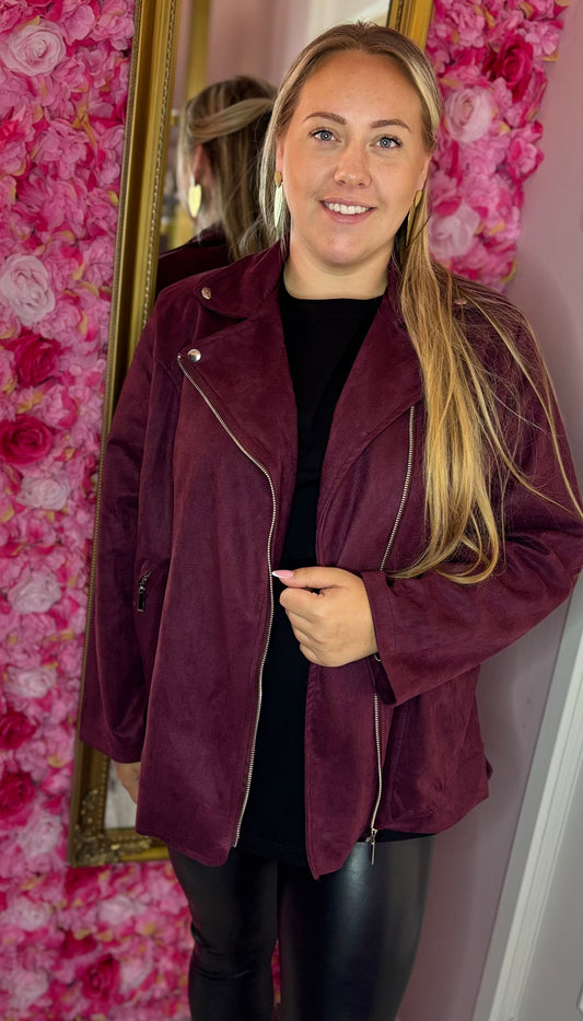 Suede Look Jas Bordeaux Plus Size maat 44 t/m 52 (dicht)