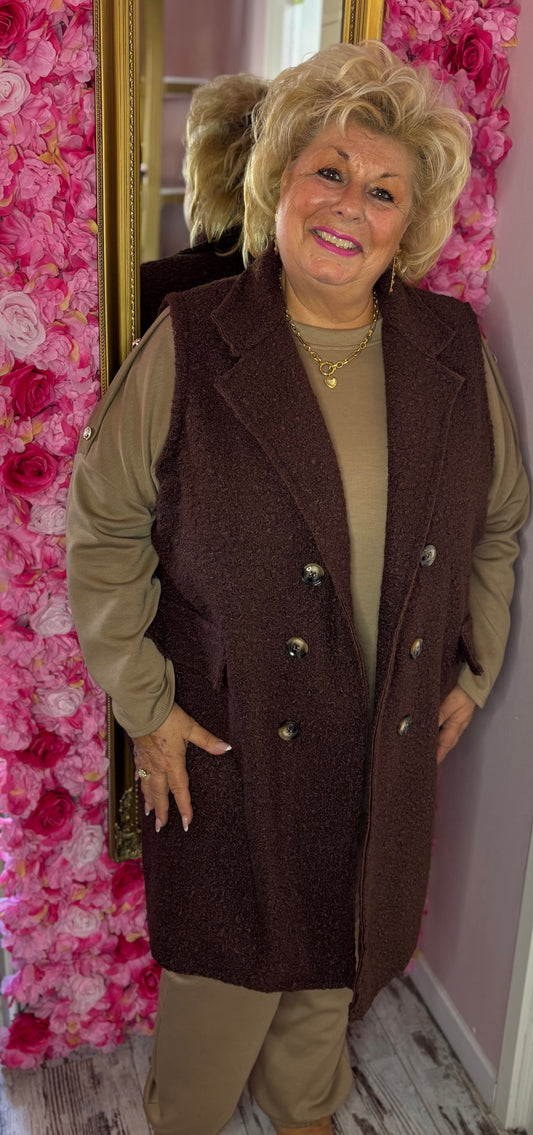 Gilet Boucle Bruin Plus Size Maat 46 t/m 56