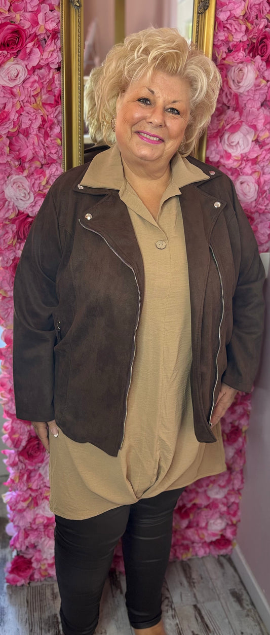 Suede Look Jas Bruin Plus Size maat 44 t/m 52 (dicht)