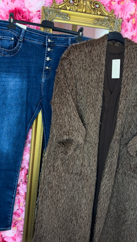Vest Moos Lang Bruin Plus Size Maat 44 t/m 52