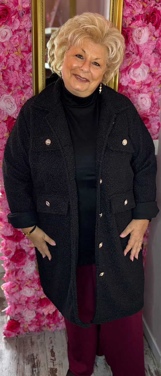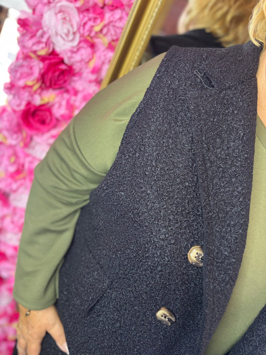 Tussenjas/Vest Boucle Zwart Plus Size Maat 48 t/m 56/58