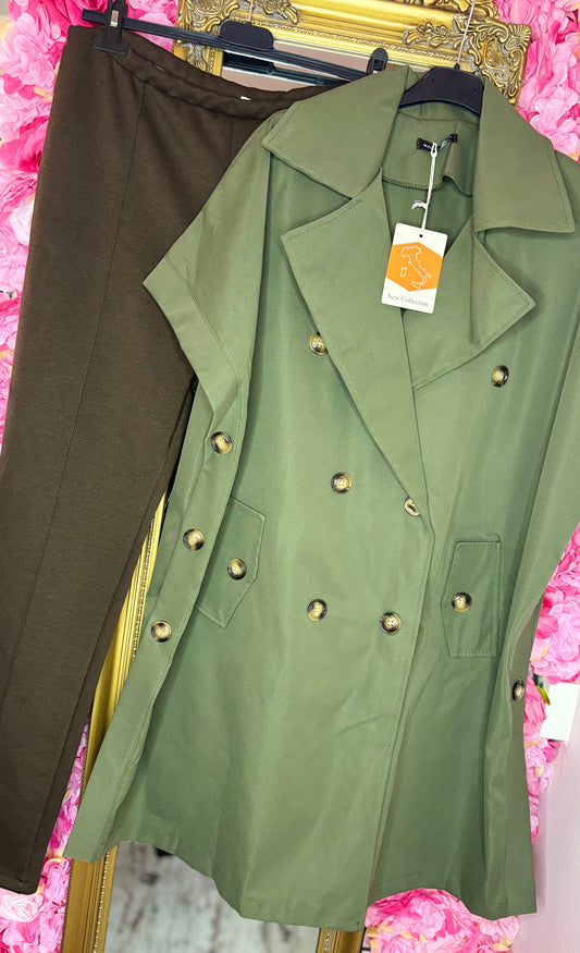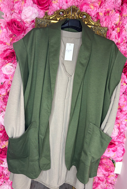 Gilet Cargo Long Leger Groen Plus Size Maat 44 t/m 52