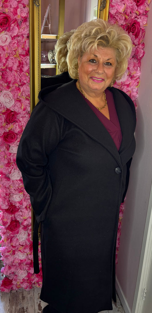 Trenchcoat met Capuchon Zwart Plus Size Maat 44 t/m 52 (dicht)