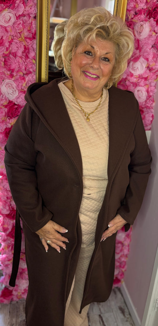 Trenchcoat met Capuchon Bruin Plus Size Maat 44 t/m 52 (dicht)