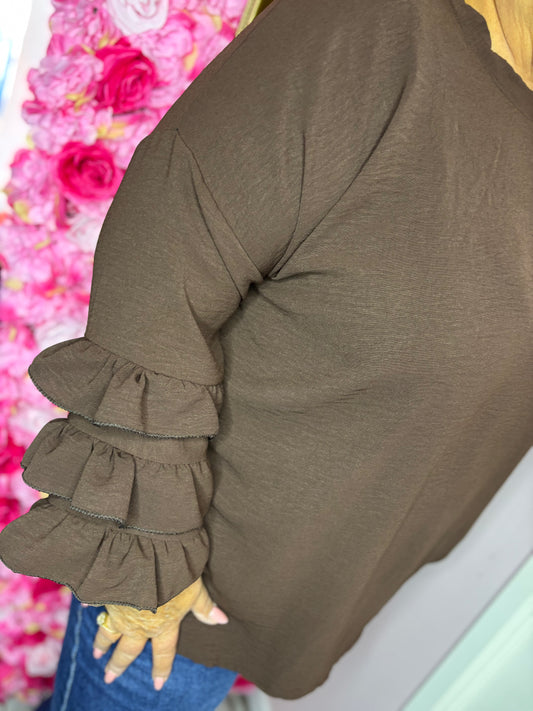 UitverkochtBlouse Cute Bruin Plus Size maat 48 t/m 54