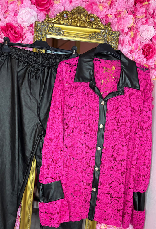 Blouse Kant Fuchsia Plus Size maat 46 t/m 54(Dicht)