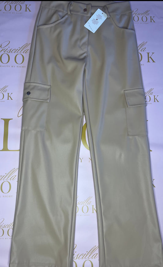Broek Leather Wide Leg Bruin Maat 36 tot 44 (valt 1 maat kleiner)