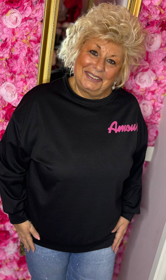 Trui Amour Zwart-Roze Plus Size Maat 44 t/m 50
