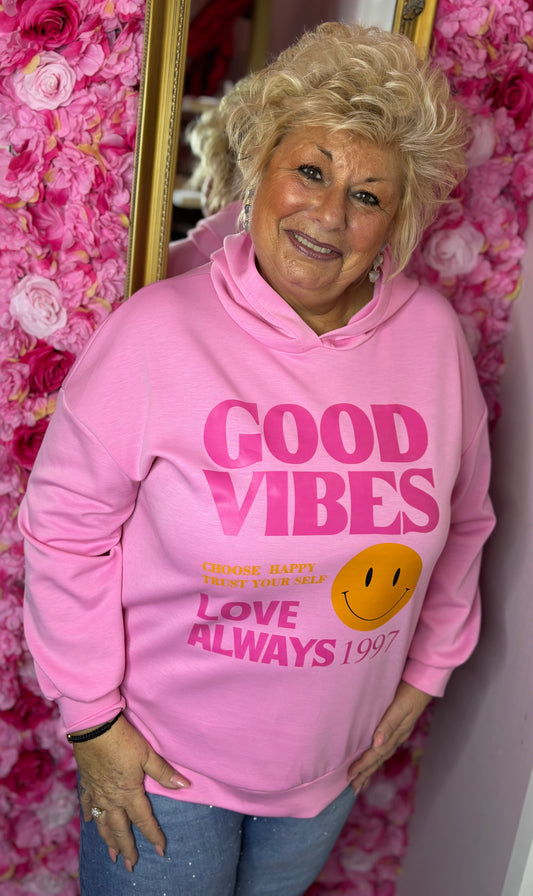 Hoodie Good Vibes Roze Plus Size Maat 44 t/m 50