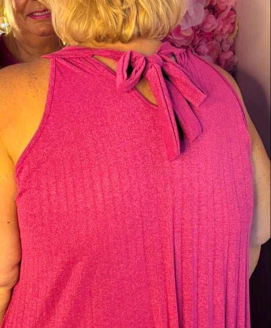 Lange Jurk Plisse Shine Fuchsia Plus Size 44 t/m 52-54