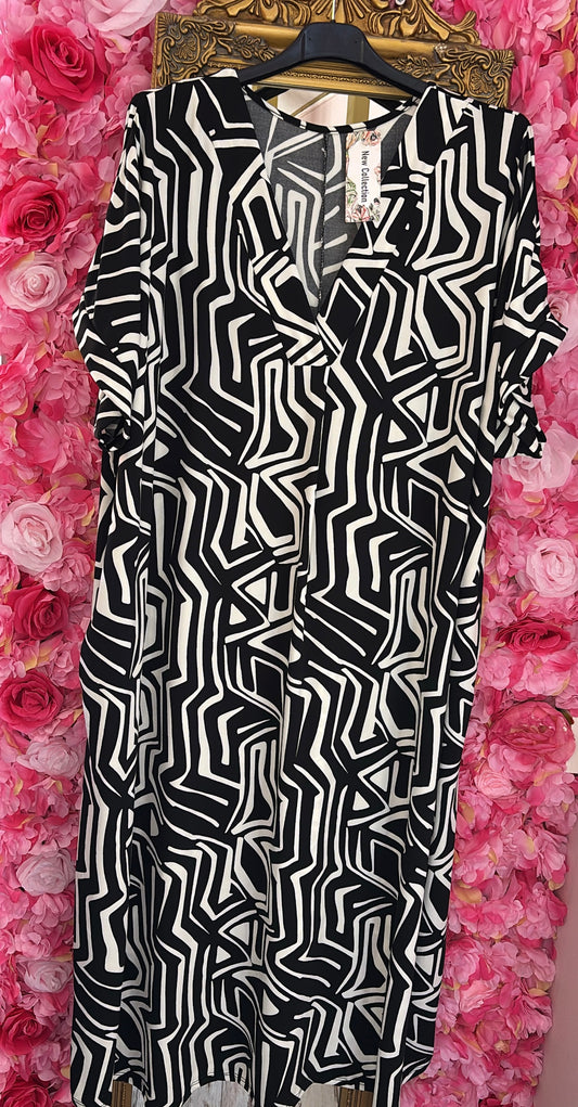 Jurk Autum Zwart-Wit Plus Size 48 t/m 54-56