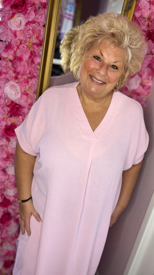 Lange Jurk Summer Licht Roze Maat 48 t/m 54-56