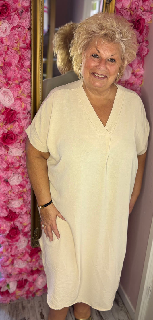 Lange Jurk Summer Beige Maat 48 t/m 54-56