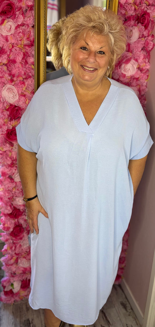 Lange Jurk Summer Licht Blauw Maat 48 t/m 54-56