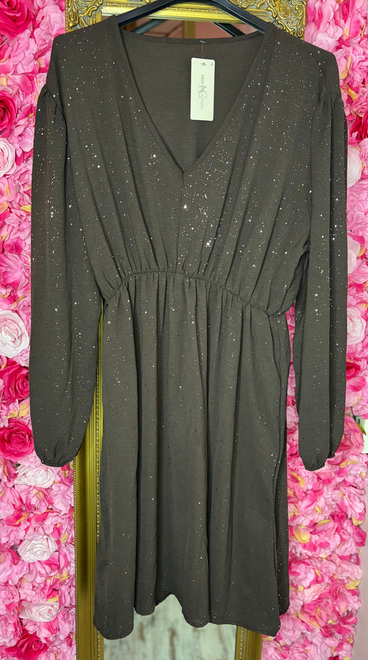Jurk Shine Bruin Plus Size maat 44 t/m 50