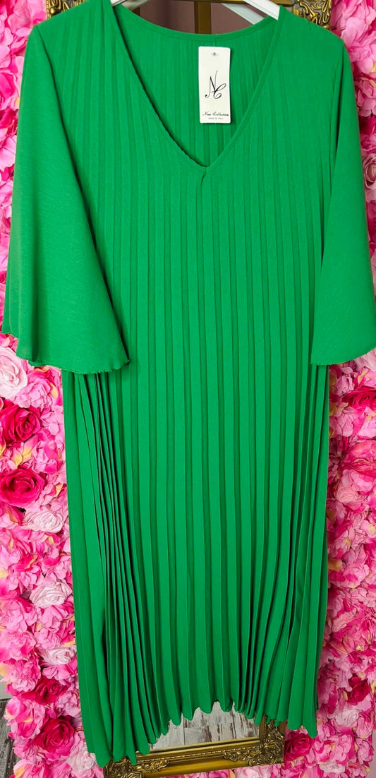 Lange Jurk Plisse Queen Groen Plus Size 44 t/m 50