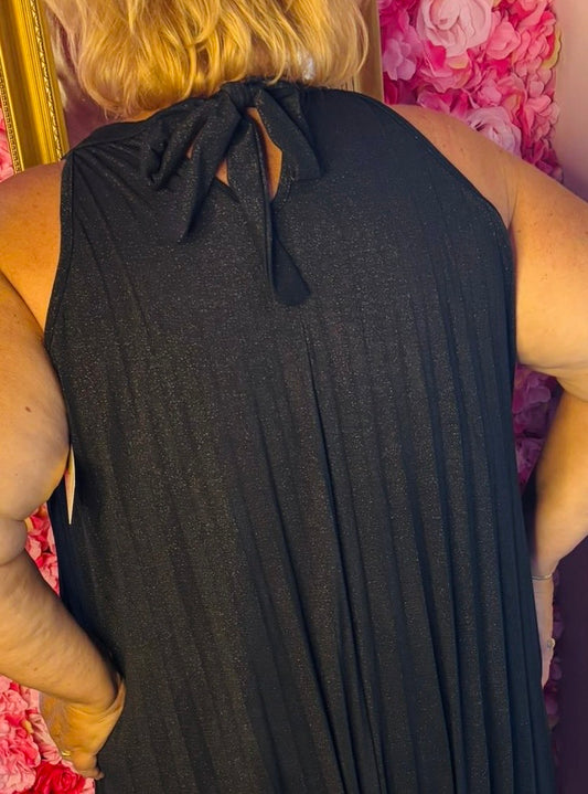 Lange Jurk Plisse Shine Zwart Plus Size 44 t/m 52-54