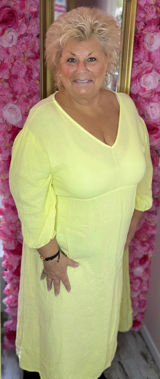 Lange Jurk Summer Geel Maat 48 t/m 54-56