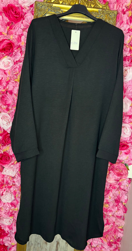 UitverkochtJurk Basic Linda Zwart Plus Size 42 t/m 48-50