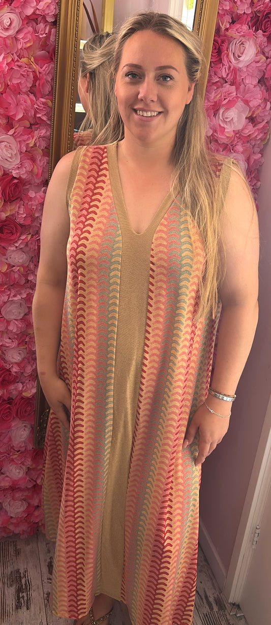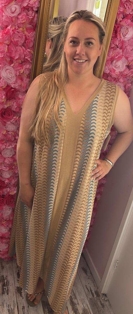 Lange Jurk Stripe Beige Plus Size 46 t/m 52-54