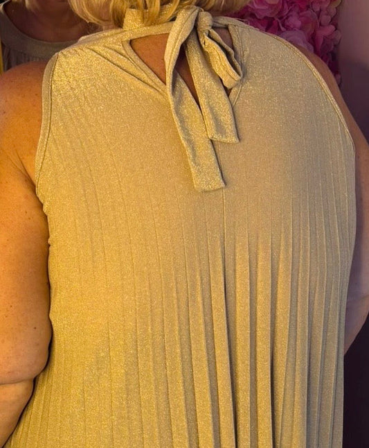 Lange Jurk Plisse Shine Gold Plus Size 44 t/m 52-54