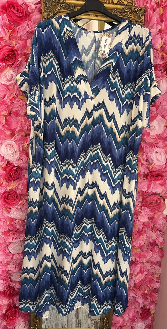 Lange Jurk Kos Blauw Plus Size maat 44 t/m 52