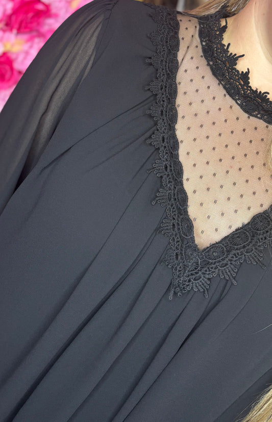 Blouse Mio Kant Zwart Plus Size maat 44 t/m 52