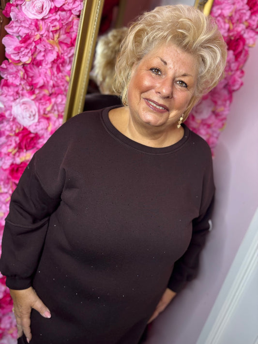Sweater Strass Bruin Plus Size Maat 44 t/m 52-54