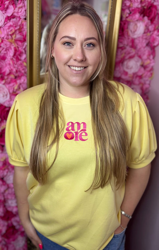 T-shirt Amore Geel Plus Size Maat 44 t/m 48-50