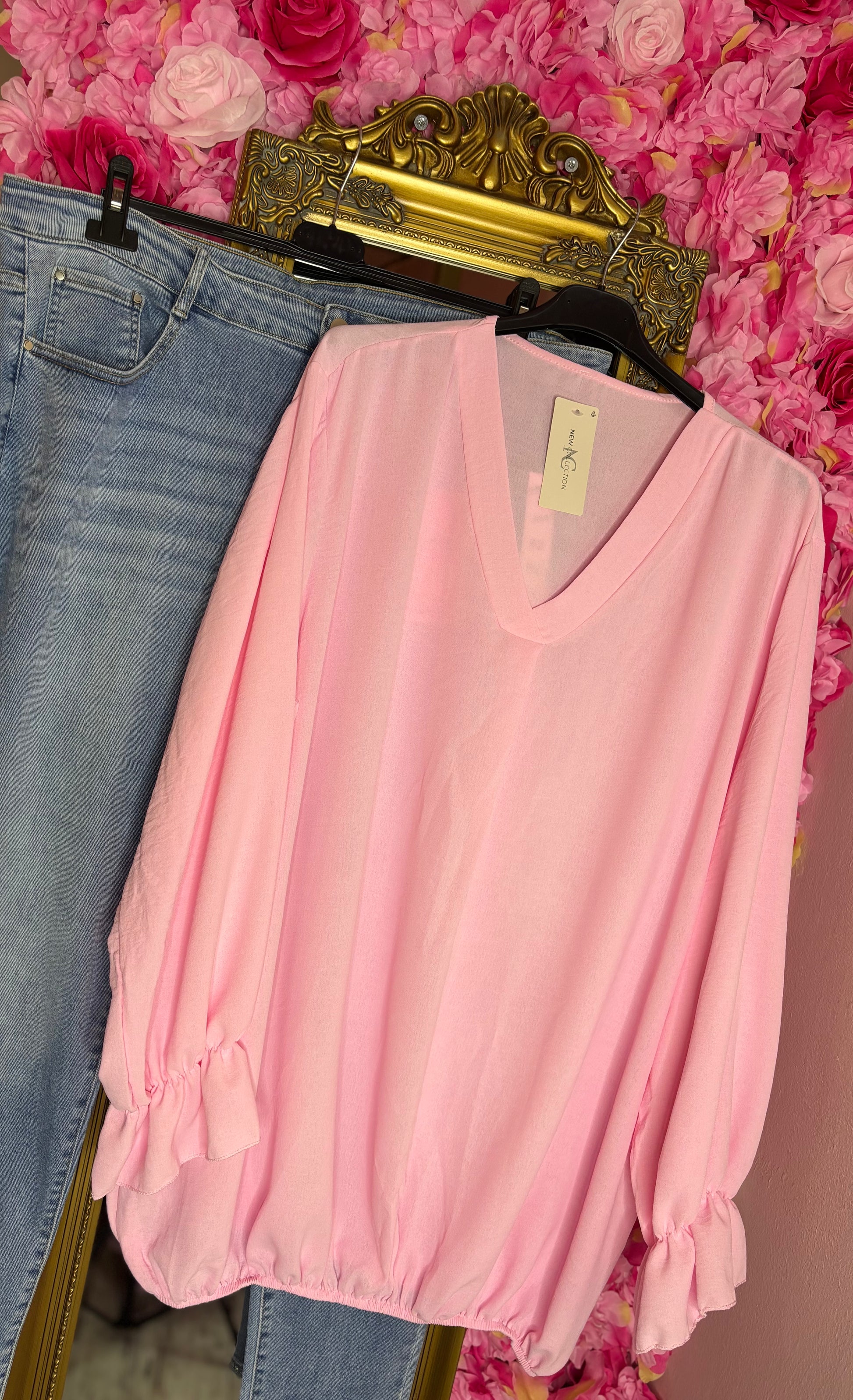 Blouse Baloon Licht Roze Plus Size maat 48 t/m 54
