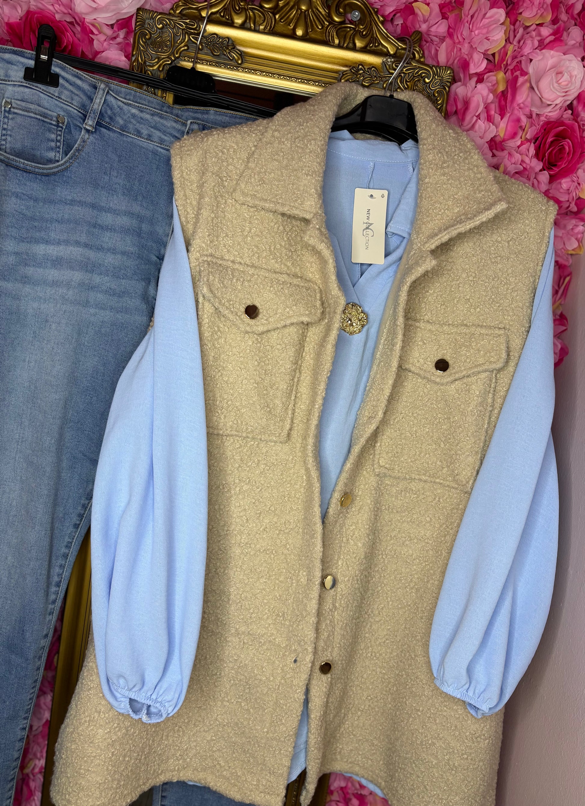 Blouse Golden Button Licht Blauw Plus Size maat 48 t/m 54-56