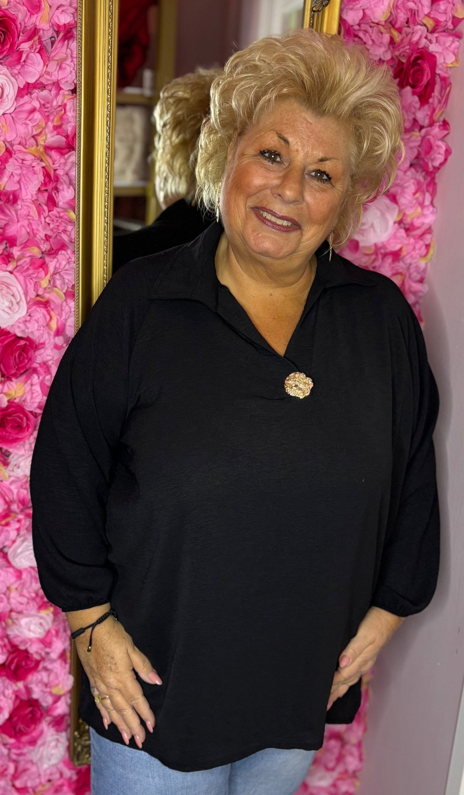 Blouse Golden Button Zwart Plus Size maat 48 t/m 54-56