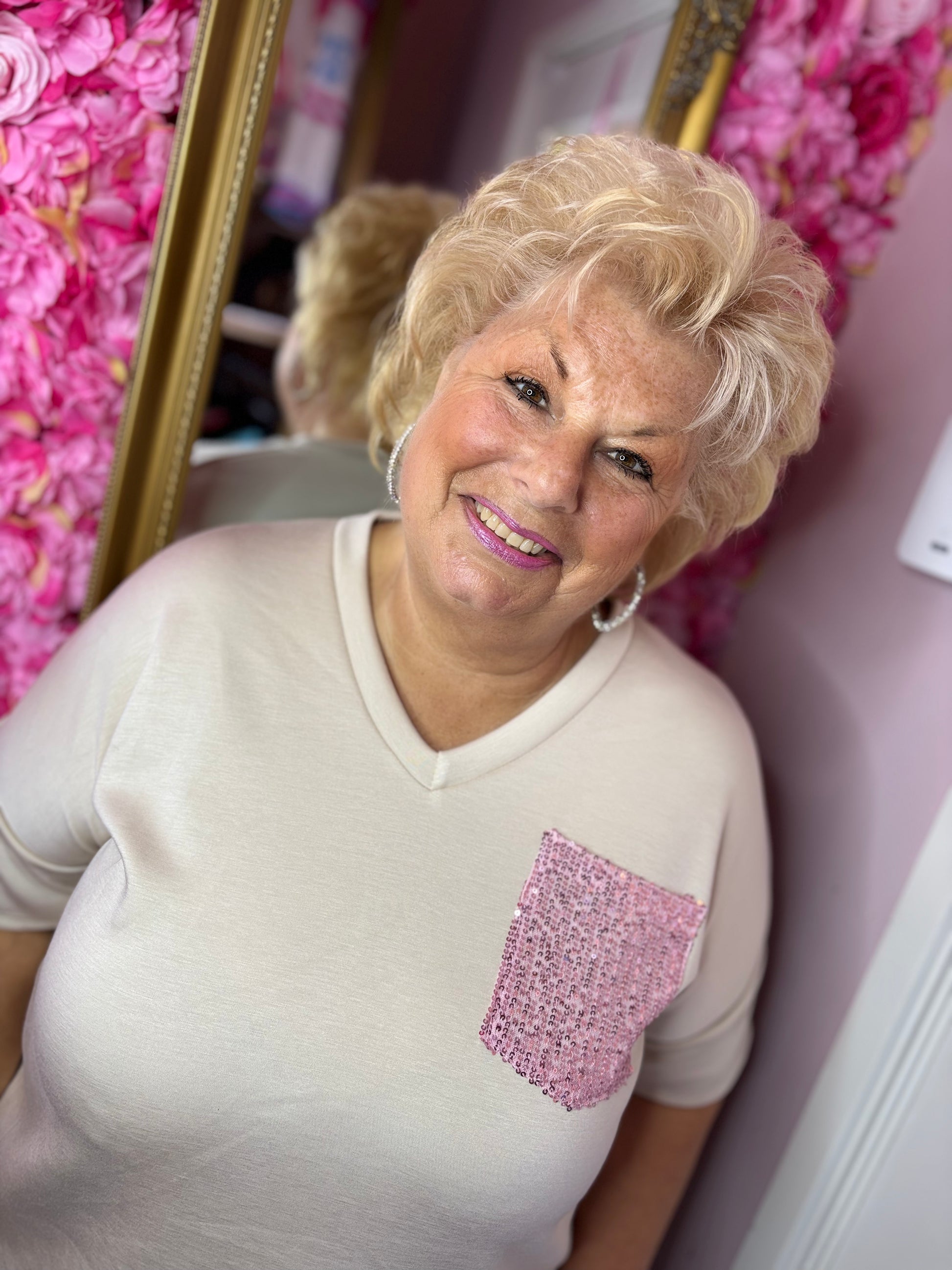 Natuurlijk hebben we er iets extra's aan toegevoegd: op de borst én op de kont zakken, zitten roze glitter Pailletten die voor de finishing touch zorgen.