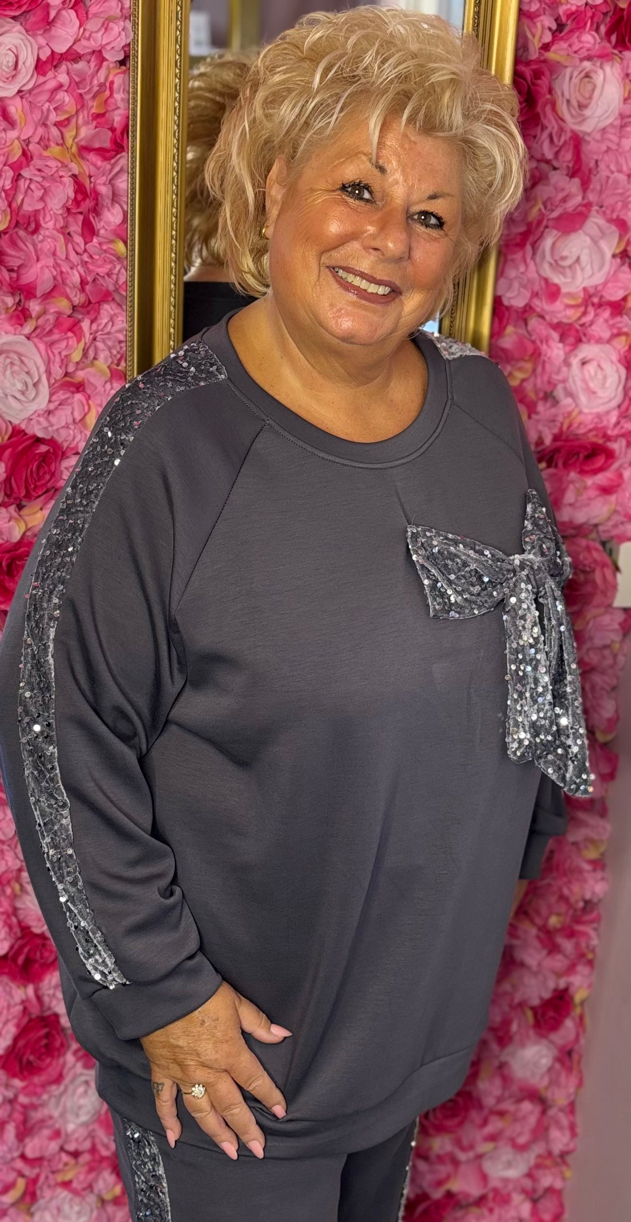 Comfy Set Glitter Bow Grijs Plus Size maat 46 t/m 54