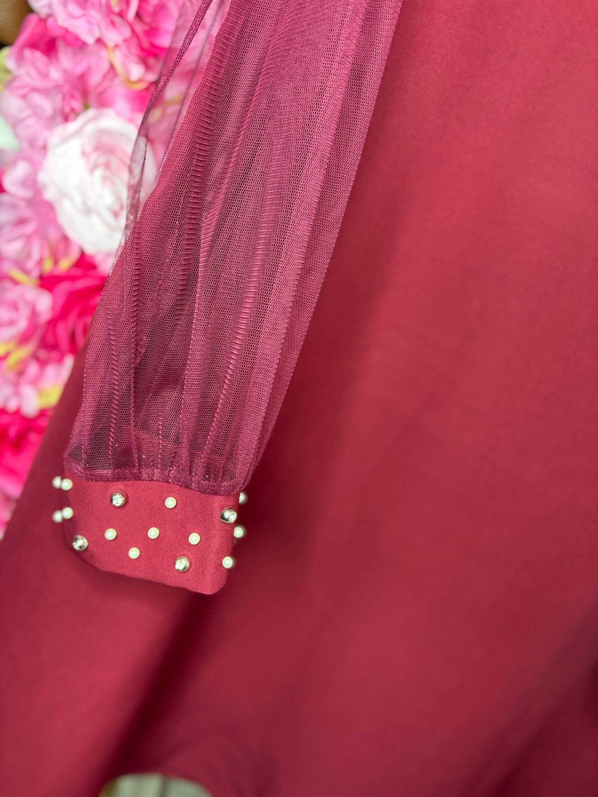 Jurk Parel Bordeaux Plus Size maat 44 t/m 50-52