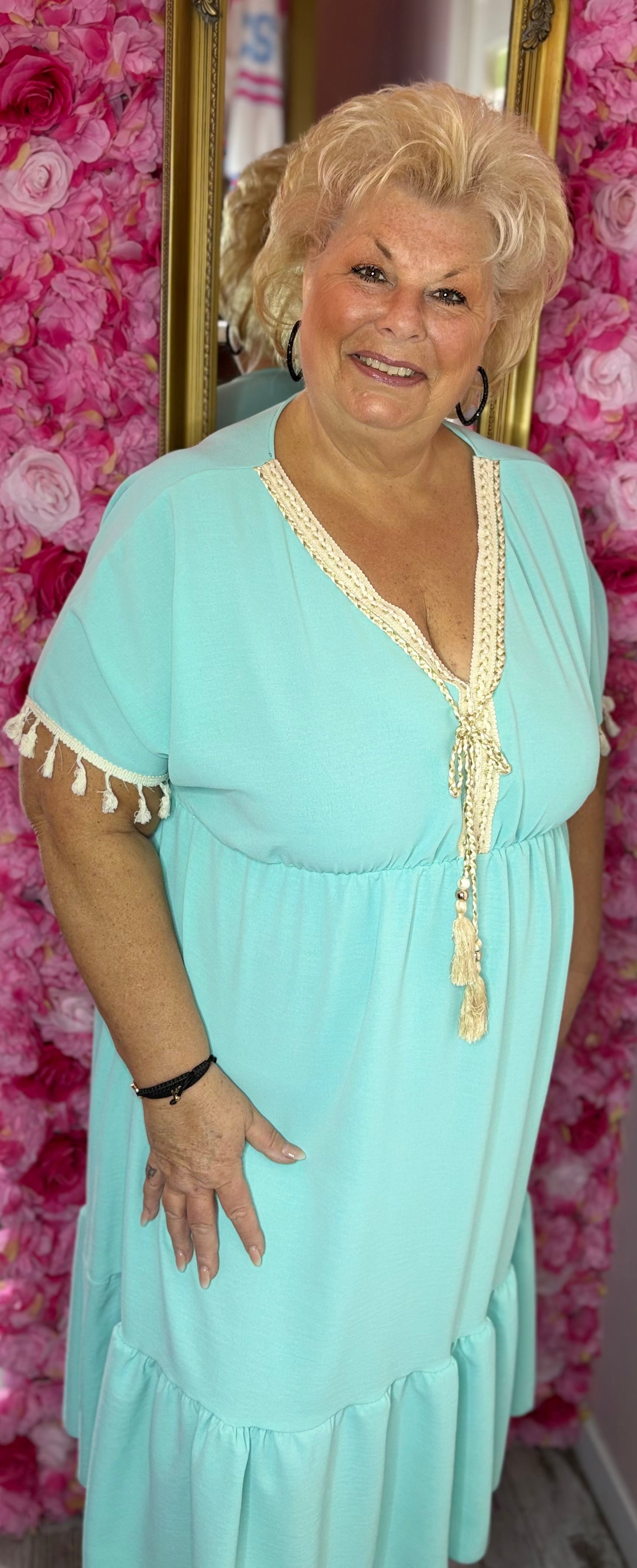 Lange Jurk Boho Mint Maat 48 t/m 54