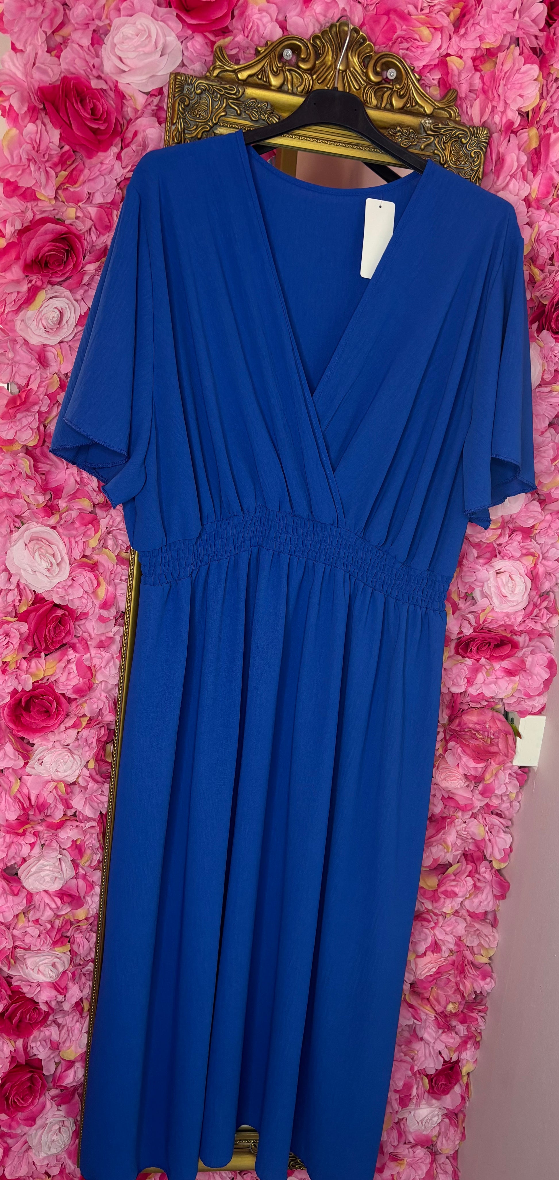 De elastische taille zorgt voor een heerlijke fit, terwijl de bovenkant mooi valt in een V-hals met een lichte overslag, super flatterend en vrouwelijk.