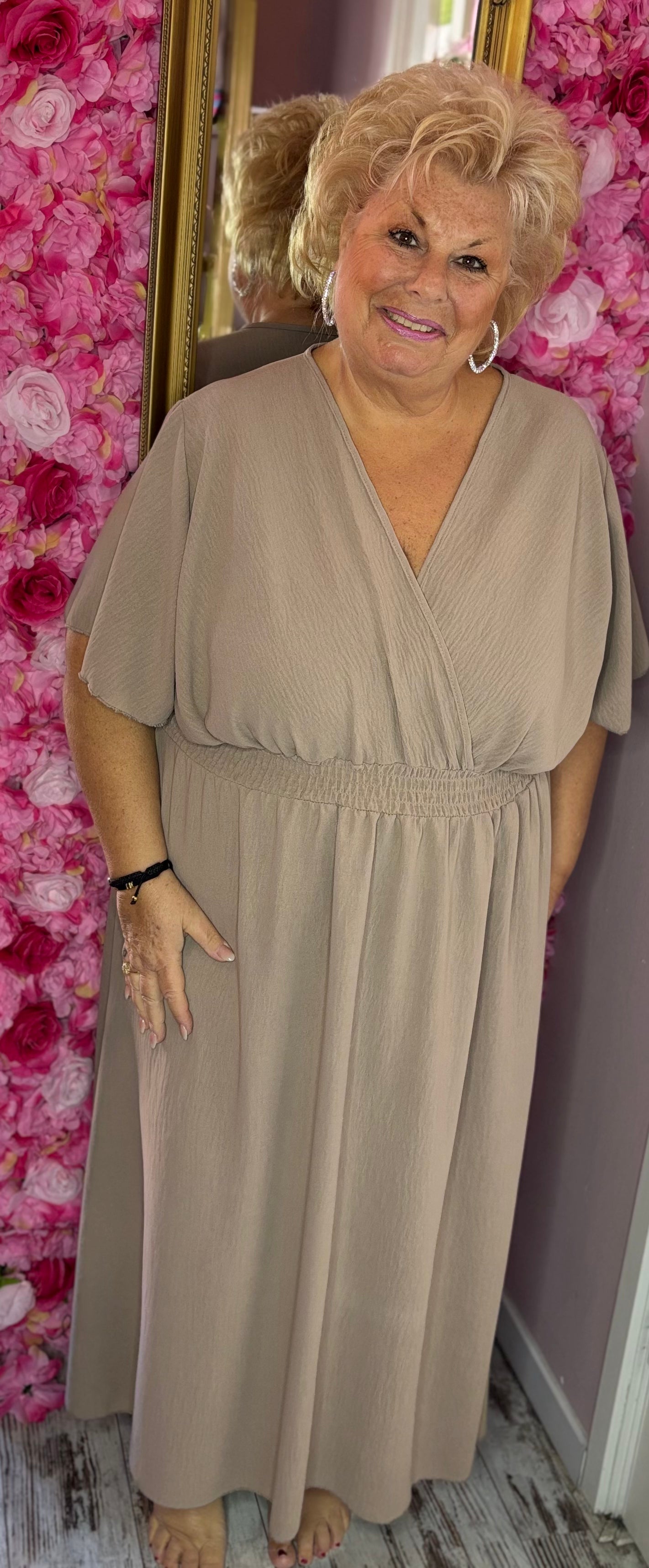 Lange Jurk Ela Taupe Maat 48 t/m 54-56