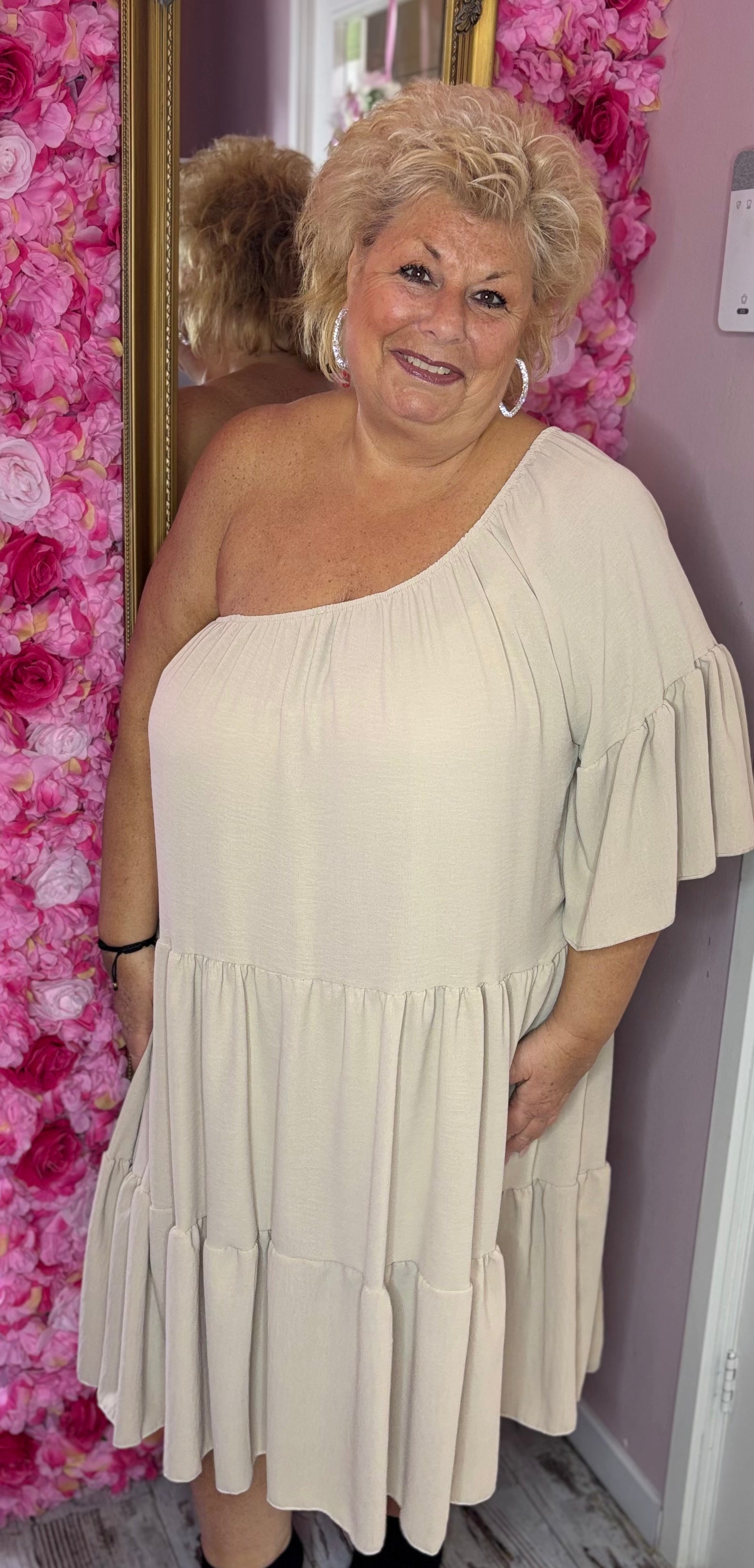 •LUCKY LOOK* Jurk-Tuniek One Beige Maat 50 t/m 58