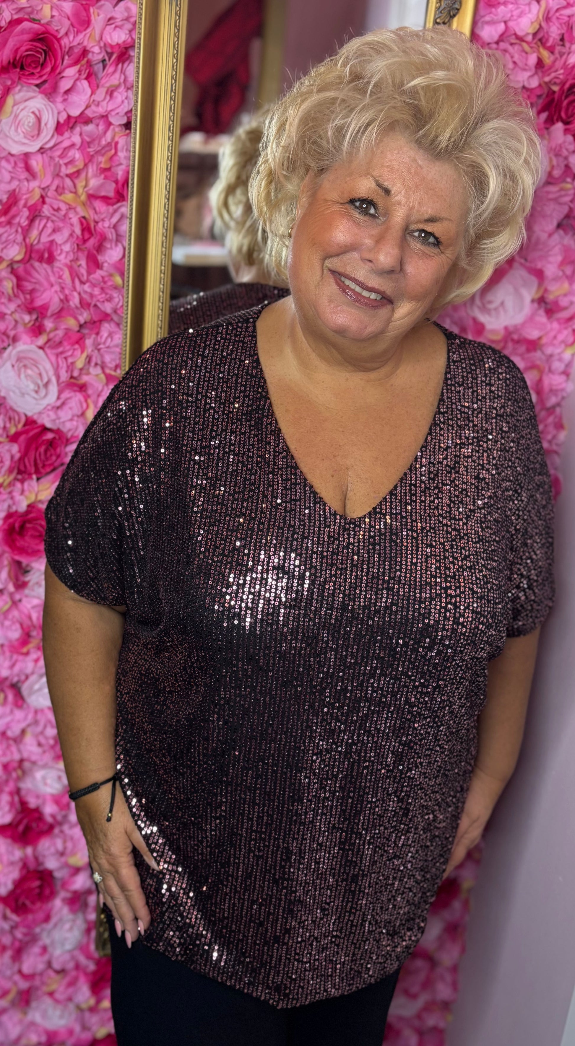 Shirt Glitter Bruin Plus Size Maat 48 t/m 54-56
