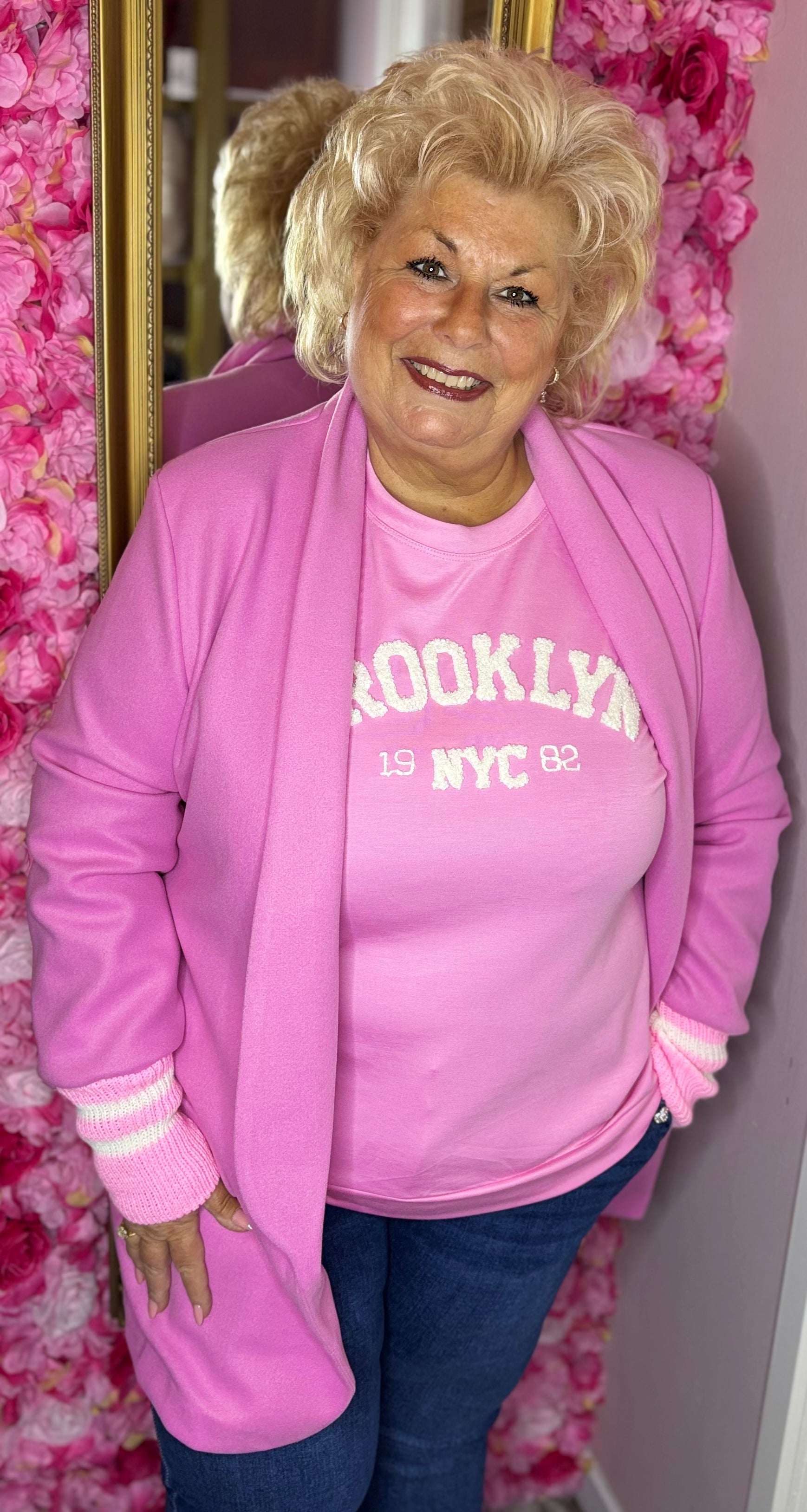 Tussenjas/Vest Baseball Chique Barbie Roze Plus Size Maat 44 t/m 50